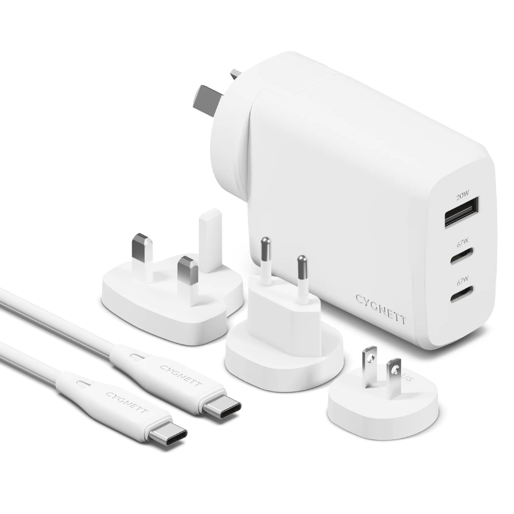 Cygnett Voyager 67W Multi Port Wall Charger (US/AU/UK/EU Plug Adapters​) – White