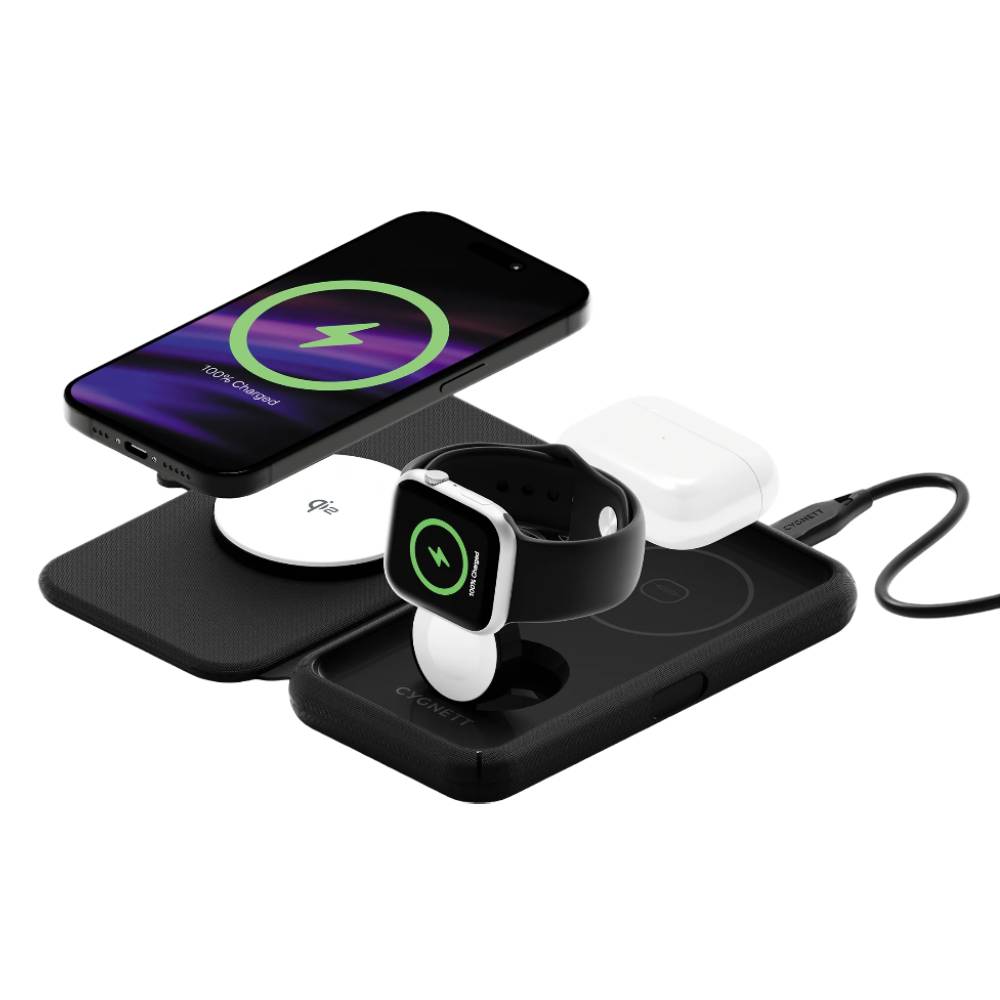 Cygnett Voyager MagTravel 3-in-1 Qi2.0 Wireless Charger – Black