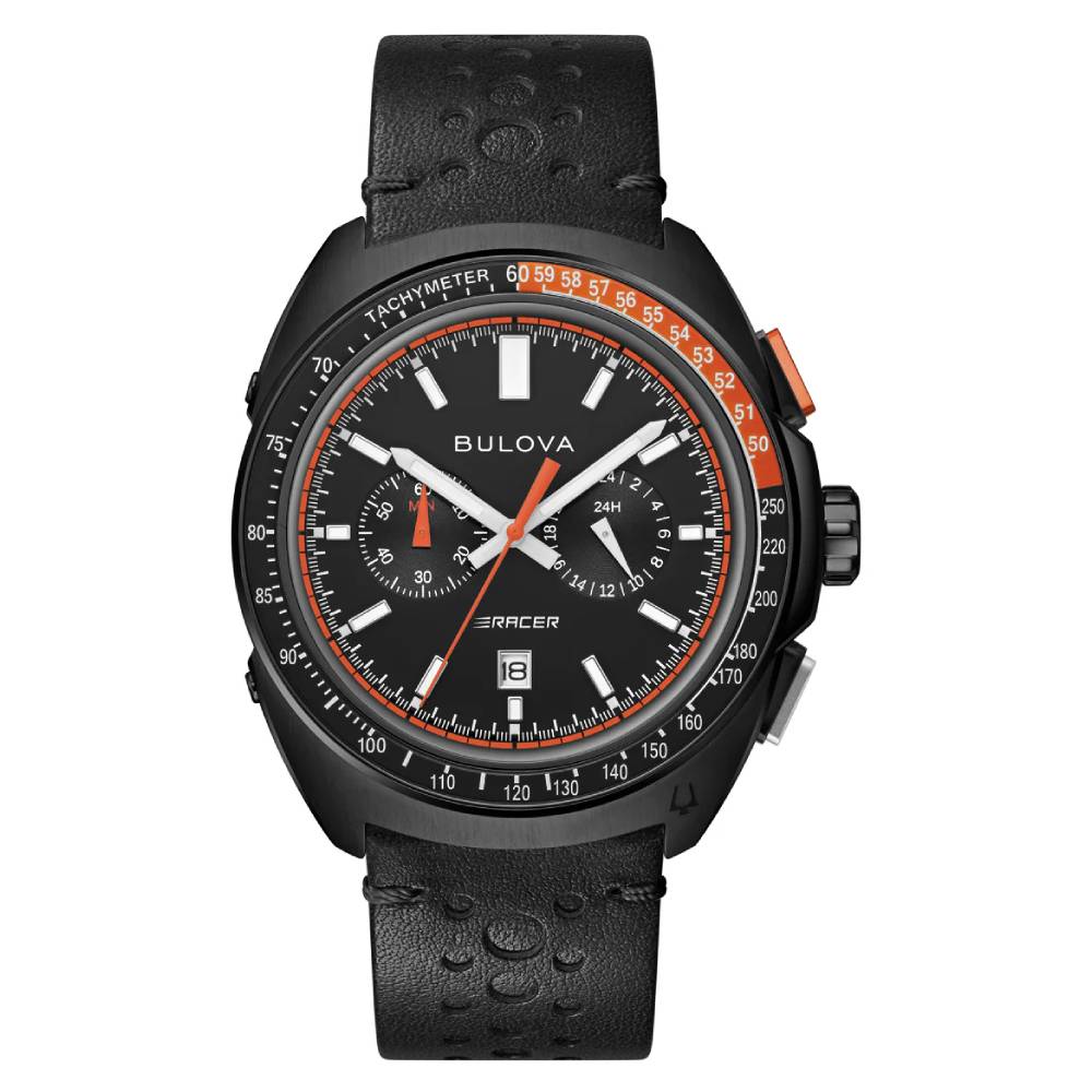 Bulova Racer Chronograph Black Dial Leather Strap Watch Men’s (98B428)