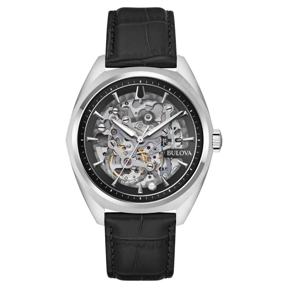 Bulova Surveyor Automatic Black Dial Leather Strap Men’s Watch (96A310)