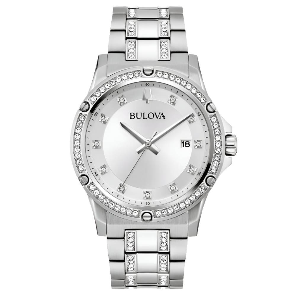 Bulova Classic Crystal Silver-Tone Dial Quartz Bracelet Men’s Watch (96K114)