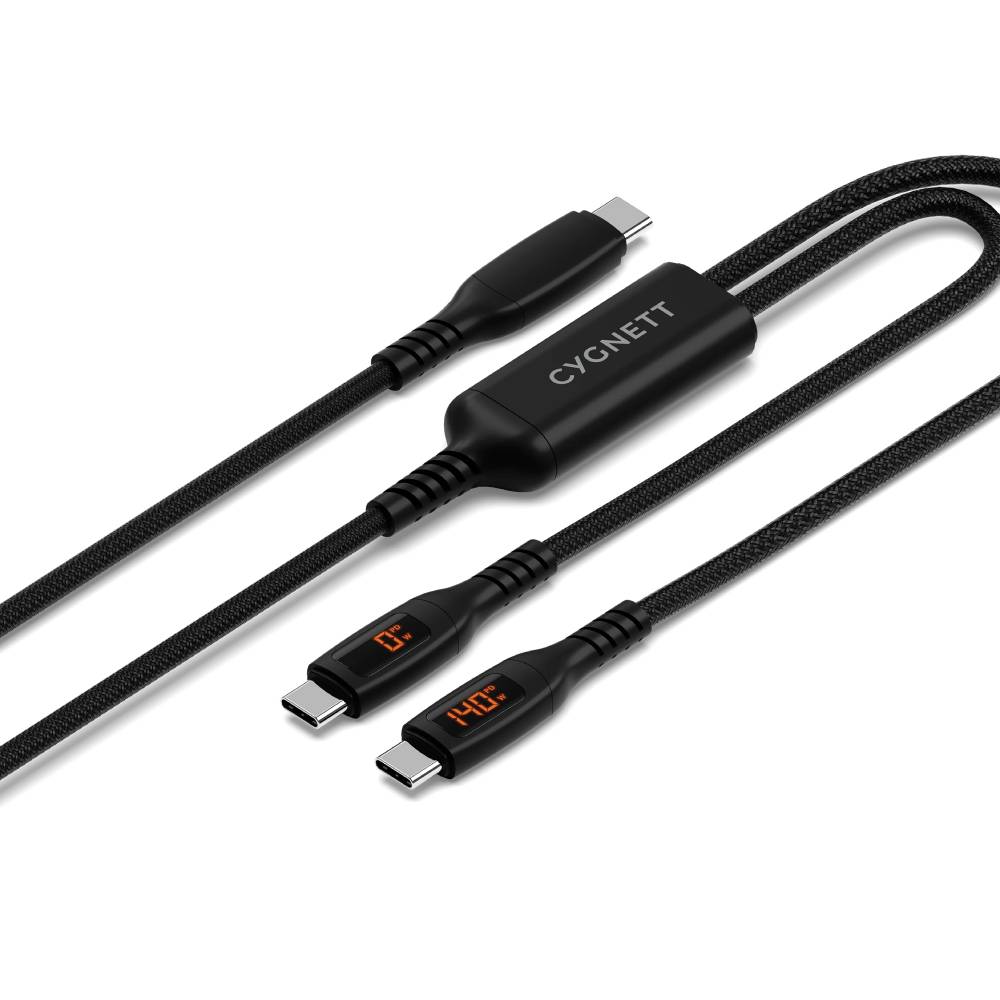Cygnett Unite USB-C to Dual USB-C Split LED Cable 140W with LED Display 1.5M – Black
