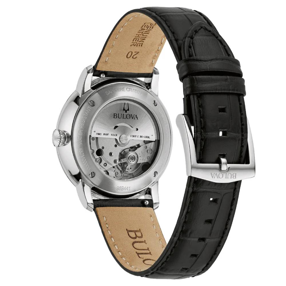 Bulova Hudson Automatic Black Dial Leather Strap Men’s Watch (96B441)