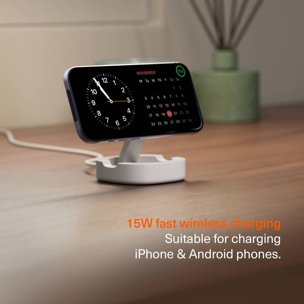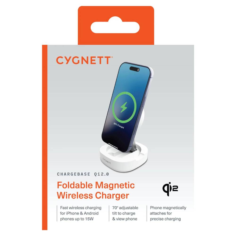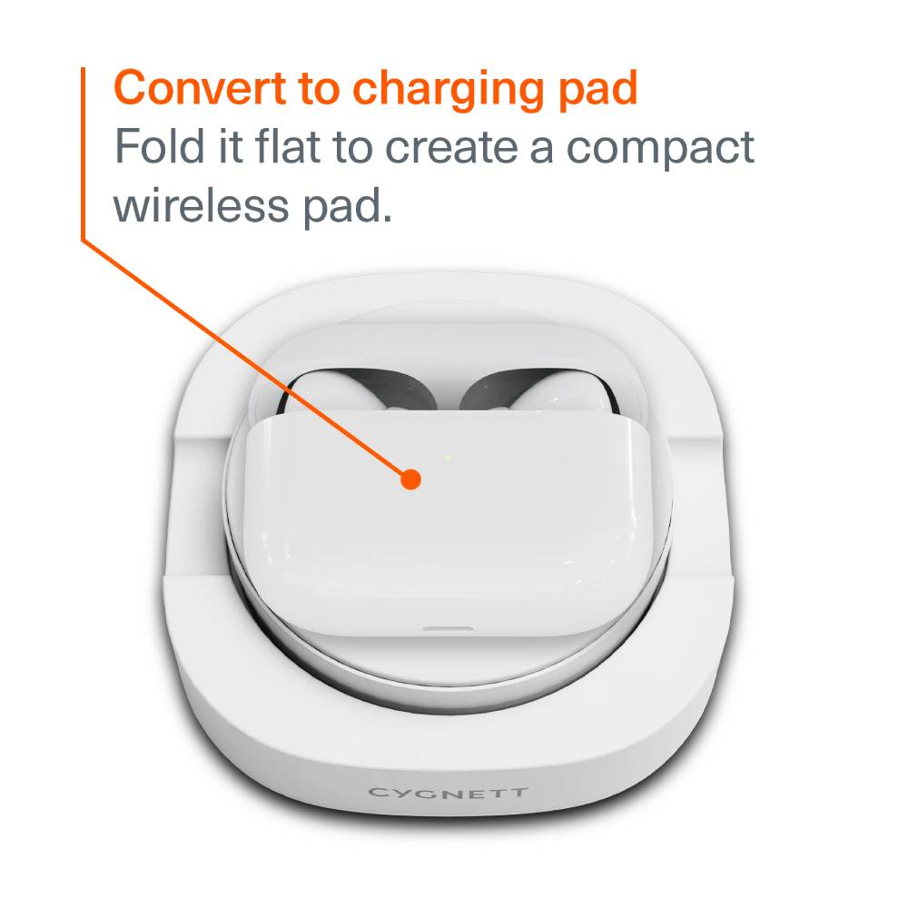 Cygnett ChargeBase Qi2 Foldable Magnetic Wireless Charger – White