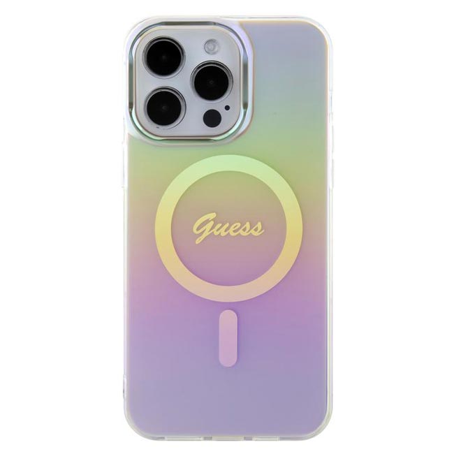 Guess Script MagSafe Case (Suits iPhone 15 Pro Max) – Iridescent Pink