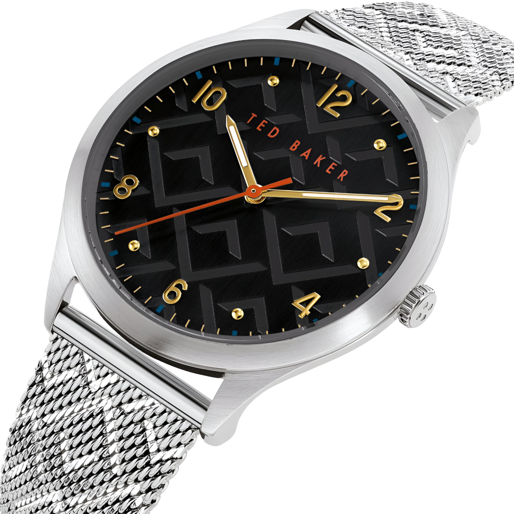 Ted Baker Manhatt Silver Mesh Black Dial Watch (BKPMHS002)