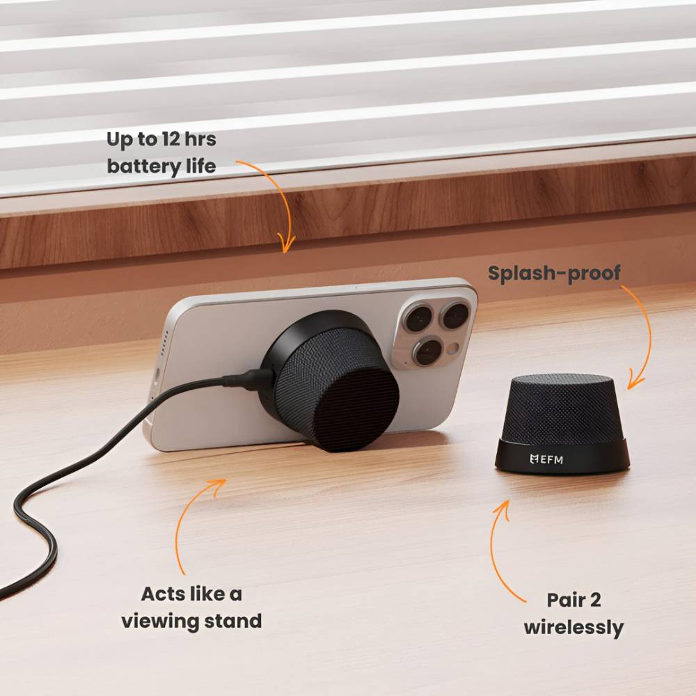 EFM Cloudbreak Mag Pro Bluetooth Speaker & 10W Wireless Charger With Extra Magnetic Ring – Charcoal Black